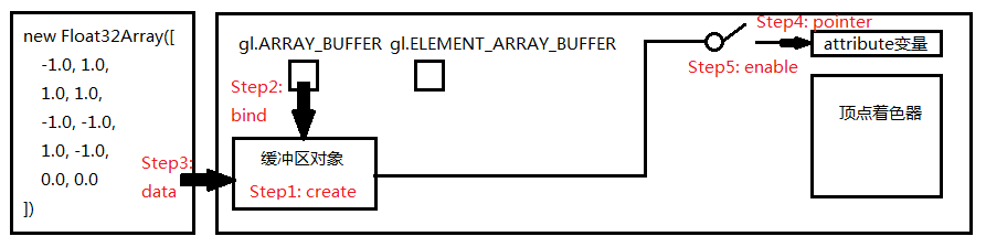 从创建buffer到写入一组顶点数据,我们需要做5件事