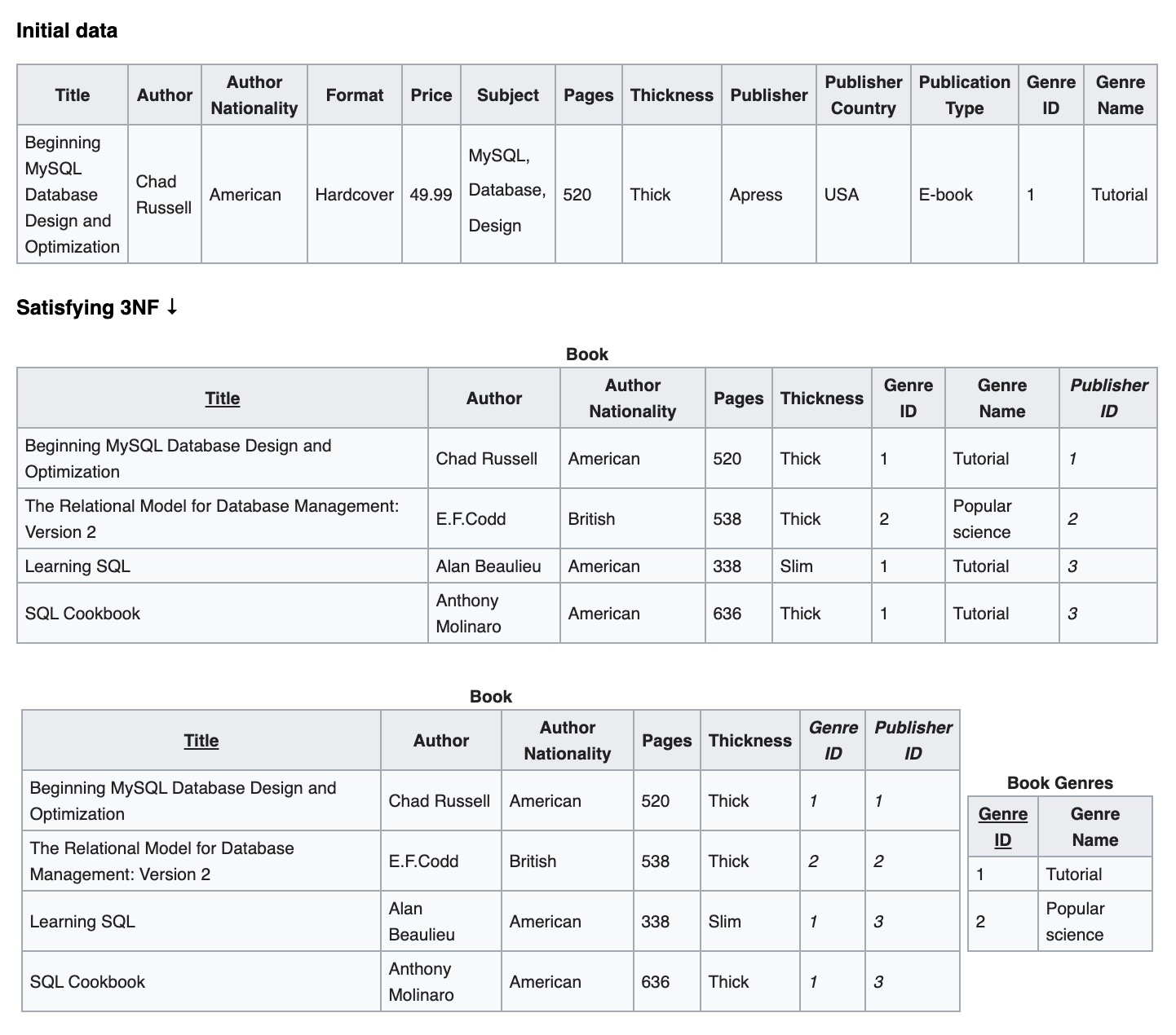我们一般把满足 3NF 的关系模式(Relation schema)称为规范化的(Normalized),大多数情况下都能规避上面提到的插入、更新和删除异常。然而,在解决这些问题的同时,范式化也带来了另一些问题