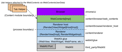 WebContents: A reusable component that is the main class of the Content module. It's easily embeddable to allow multiprocess rendering of HTML into a view. See the content module pages for more information.