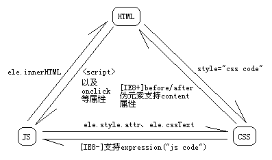 对于各层的职能,有一句比较贴切的解释:HTML是名词(n),CSS是形容词(adj)和副词(adv),JS是动词